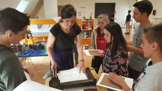 On 14 March and 11 April the artist Morgane Isilt Haulot came to run a linocut workshop with Y10 pupils. They worked for ten hours on a particular process that involves producing an image with several colour printings. This work will be dispalyed in a group exhibition from 2 to 31 May 2017 at the Diocesan Pastoral Centre,133 Avenue de la République in Clermont-Ferrand.